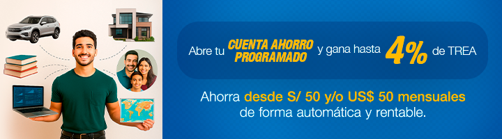 Flexibilidad a tu medida: Elige ahorrar desde S/ 50.00 o US$ 50.00 mensuales. Adapta el plazo a tus necesidades, desde 1 hasta 36 meses, para lograr tus objetivos financieros.